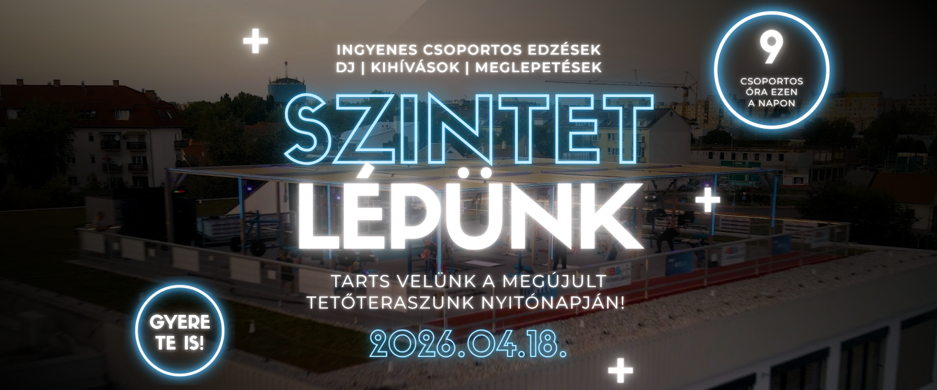 Csapatban mindig, minden könnyebb! Szakadj ki a hétköznapokból és edz tetőteraszunkon egy izzasztó köredzésen! A jó hangulat, a különleges környezet és a motiváló csapat garantált.